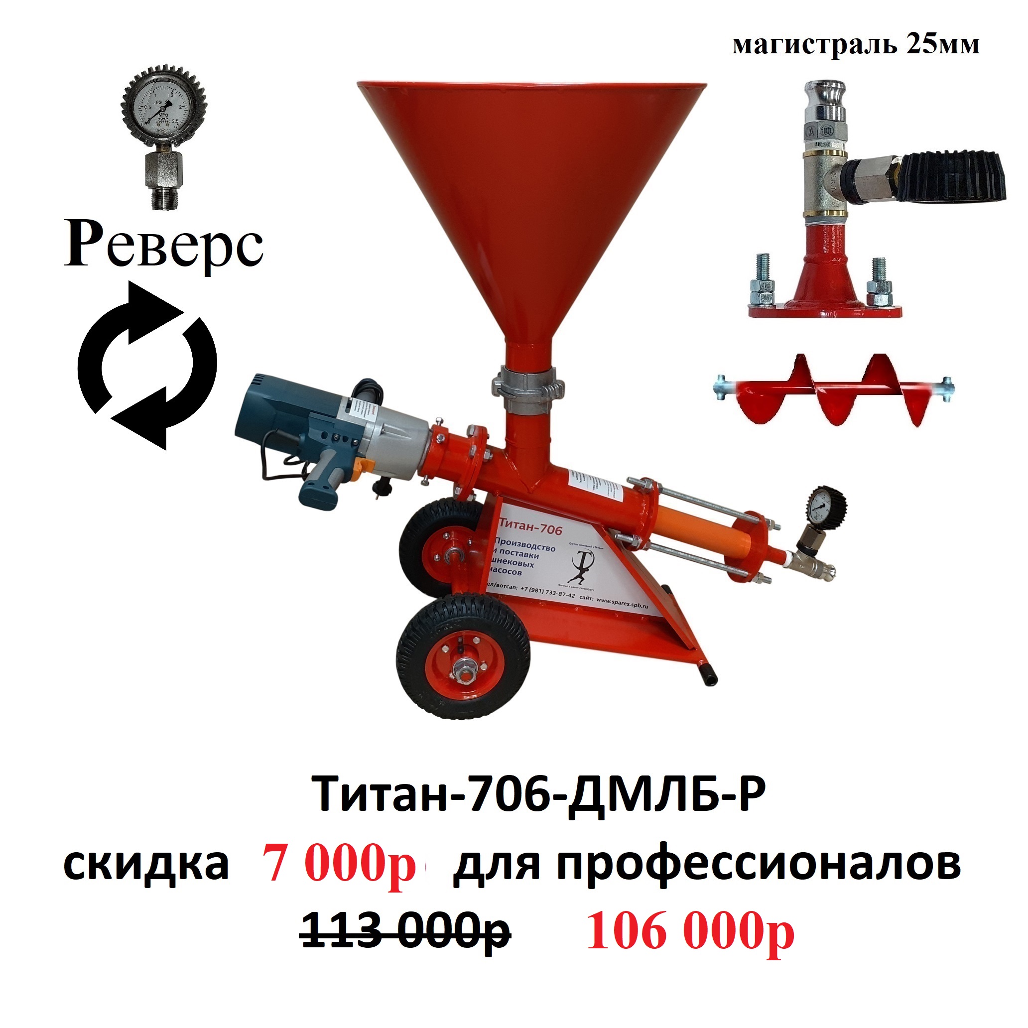 Инъекционный насос Титан-706-ДМЛБ-Р (смесительный вал, мембранный манометр, магистраль 25мм, реверс) Хит продаж